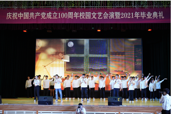 典礼在校歌《青春飞扬》音乐声中拉开序幕,毕业MV展现了2021届毕业生美好大学时光的点滴,令全场师生心潮澎湃。
