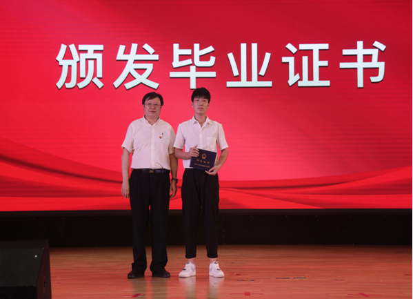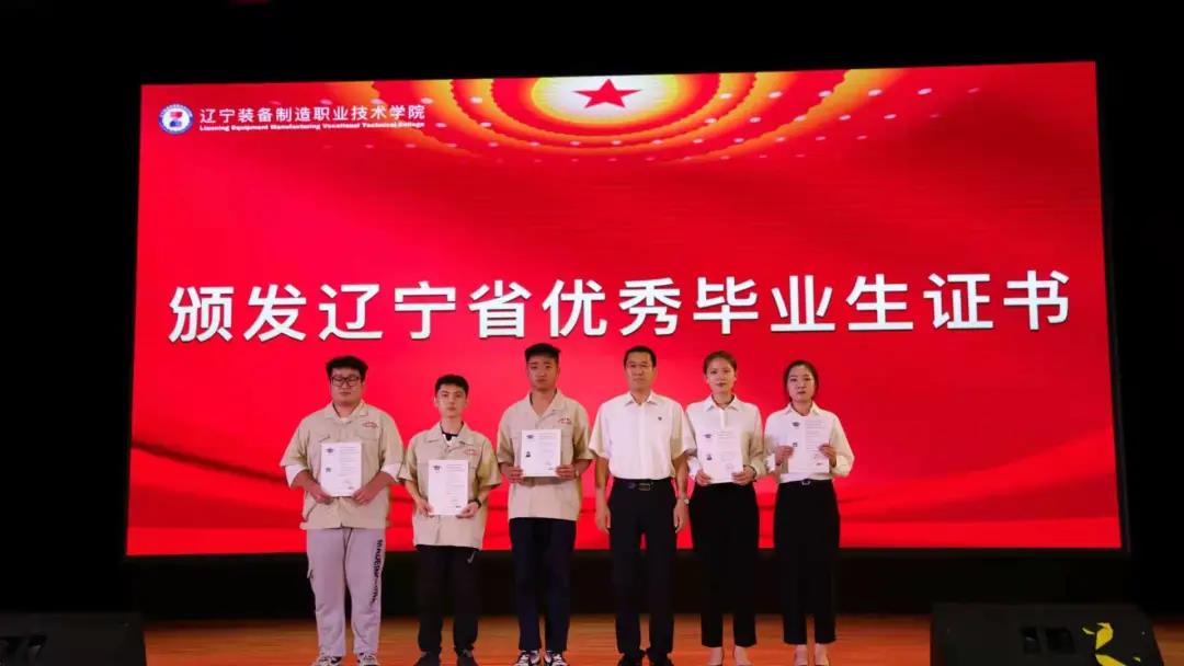 校党委书记伊焕斌为“辽宁省优秀毕业生”颁发荣誉证书。