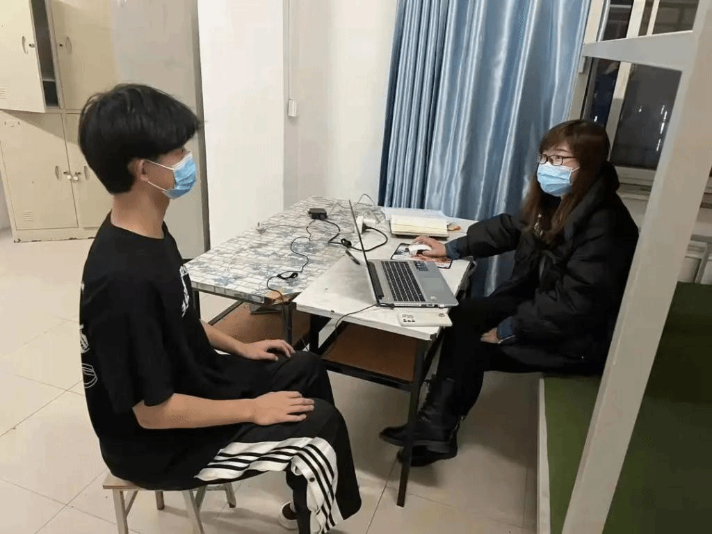 “我的办公地点今天改在了C座500啊,同学们可以随时来!”入校后的她自己把办公室设在了学生寝室,“老师,我今天有点emo,我能去找你聊聊吗?”“可以,随时!”她始终选择用微笑迎接学生的问题,用温柔化解学生焦虑,用行动解决学生困难,尽全力照顾好学生生活,稳定学生心态。