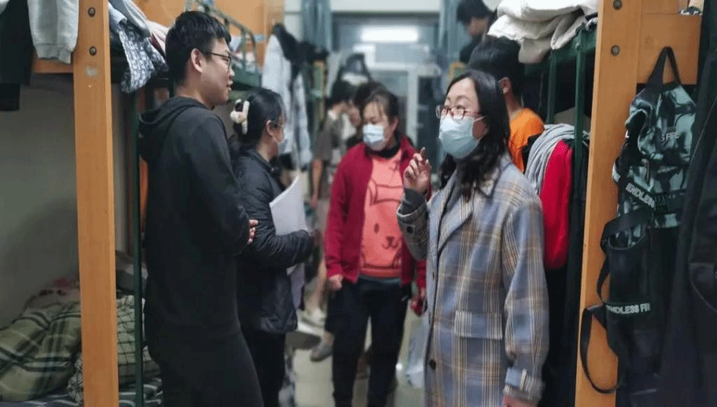 副院长朱虹带领辅导员巡查寝室与学生亲切交流
