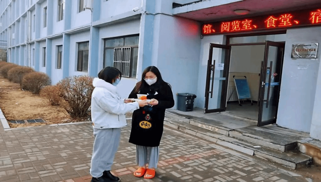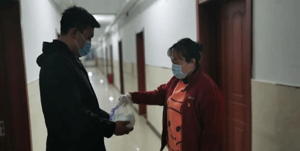学院辅导员为饮食有特殊要求的学生送去饭菜