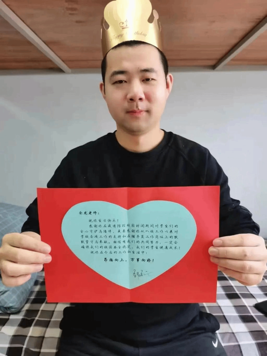 疫情拦路,爱不止步。自学校封闭管理以来,各项防控工作有条不紊、持续有序地顺利开展。学校始终高度关心驻校教职工的工作和生活,为了让他们安心、暖心地度过这段特殊时期,为他们准备了特别的生日祝福,种种贴心的举动,在这个特殊的时期显得格外温暖。