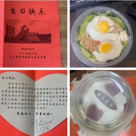 “学校太贴心了,在封闭管理这么特殊的时期,还想着我的生日,今天虽然在生命的木桩上加了一道年轮,一份成熟,一份智慧,但是我更大的收获是在教育的树桩上加了一份真情,一种依靠和信赖。”汽车工程学院辅导员裴婷婷老师激动地说。4月8日是汽车工程学院辅导员裴婷婷老师和机械工程学院辅导员戴劲老师的生日,在这个特殊的日子里,学校领导为他们送来了生日面、生日蛋糕、生日贺卡以及生日礼物,戴劲说:“生日蛋糕夹着学校最真诚的祝福,和同事一起吃生日面,一起吃生日蛋糕,这将是我最难忘最有意义最有仪式感的一个生日!”