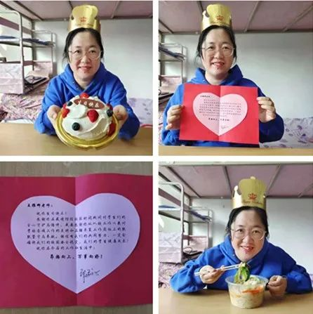 李红老师是自动控制工程学院的辅导员,4月6日是她的生日,因为封校管理她压根就没想着生日这回事,直到同事将学校的祝福端到她的面前,她感动不已“以往过生日时,都会和家人一起庆祝,这次虽然少了家人的陪伴,但坚守在校园防疫一线过生日更有意义。感谢学校领导的关心和祝福,疫情当前,作为一名辅导员,我一定会恪尽职守,用实际行动诠释辅导员的责任和担当。”