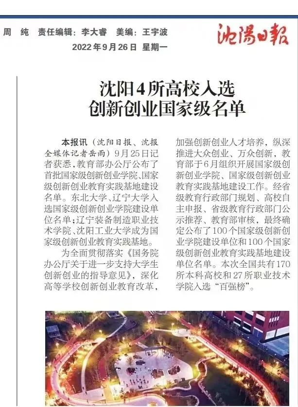聚力双创新征程,打造双创新名片—辽宁开放大学(辽宁装备制造职业技术学院)入选首批国家级创新创业教育实践基地