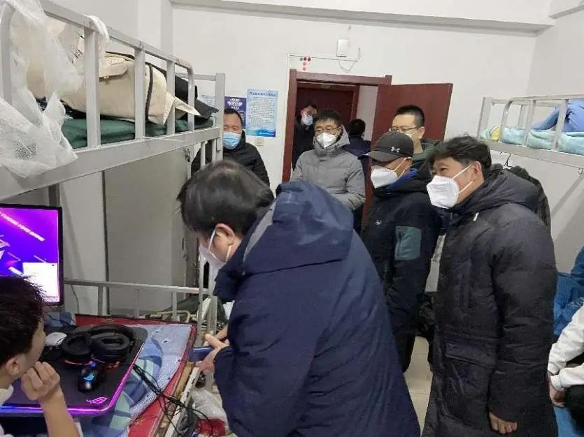 11月29日下午,校长郭永新、副校长吴厚兴、纪委书记李秀科走进学生宿舍,亲切慰问住宿学生和驻校辅导员。学校疫情防控工作专班相关部门负责人陪同。