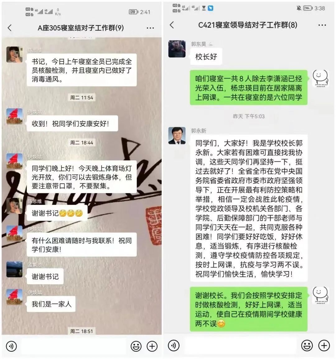 常态化开展“党员领导干部 教职工与学生宿舍结对子”活动,校领导带头,全校中层干部、思政教师和党员教师共计331人与628个学生宿舍结对子,本着“学生再小的事也是大事”的原则,深入学生宿舍就近就快解决学生困惑。