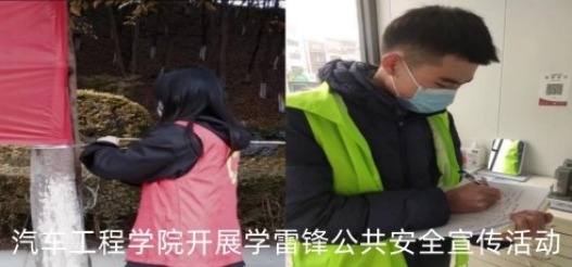 汽车工程学院分团委组织青年志愿者开展学雷锋公共安全宣传活动,引导社区居民增强安全意识,参与安全隐患排查和风险化解,把助力公共安全作为志愿服务的重要任务。