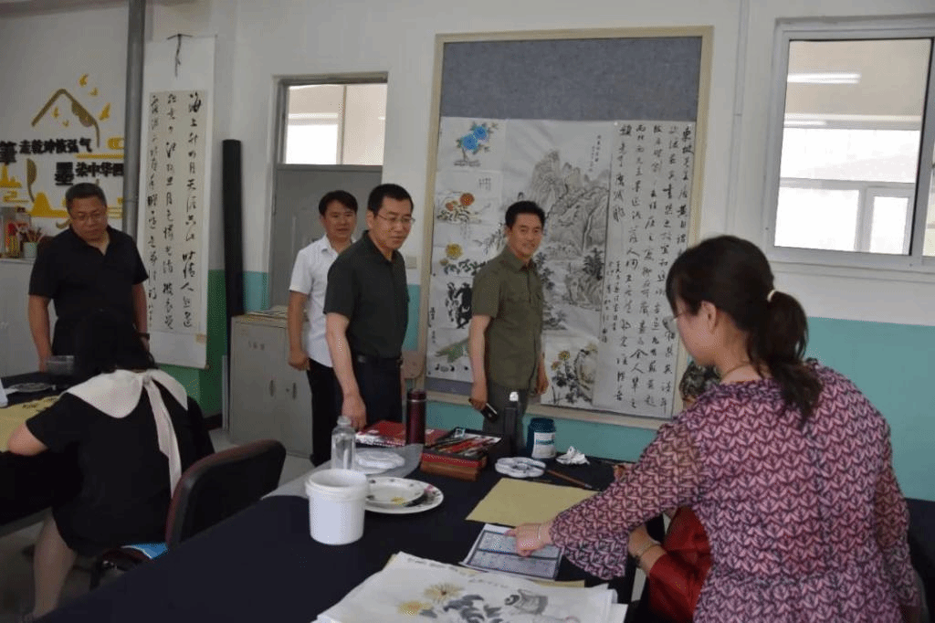 伊焕斌一行考察了建平职教中心南北两个校区,参观了实训工厂、老年教育特色教室等,观摩了老年学员排练和上课情况,与老年大学教师和学员进行了交流,听取了建平县职教中心工作情况的汇报。
