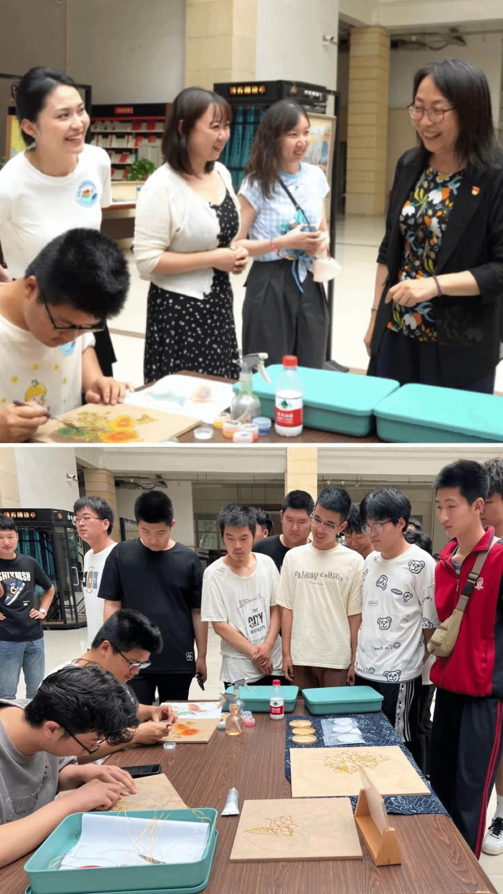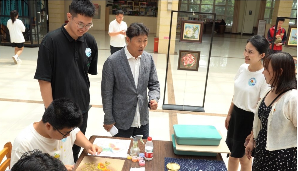 6月28日—30日,我校在图书馆一楼大厅成功举办掐丝珐琅画艺术工作坊2022-2023学年度成果展。工作坊学员为到场观展师生进行现场展示并提供实践机会。副校长吴厚兴、副校长李冬青莅临现场。本次成果展由美育教育中心主办。