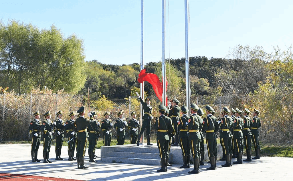 在庄严的国歌声中,军训闭营仪式正式开始。任庆国在驻训部队政治指导员夏伟的陪同下检阅受训方队。