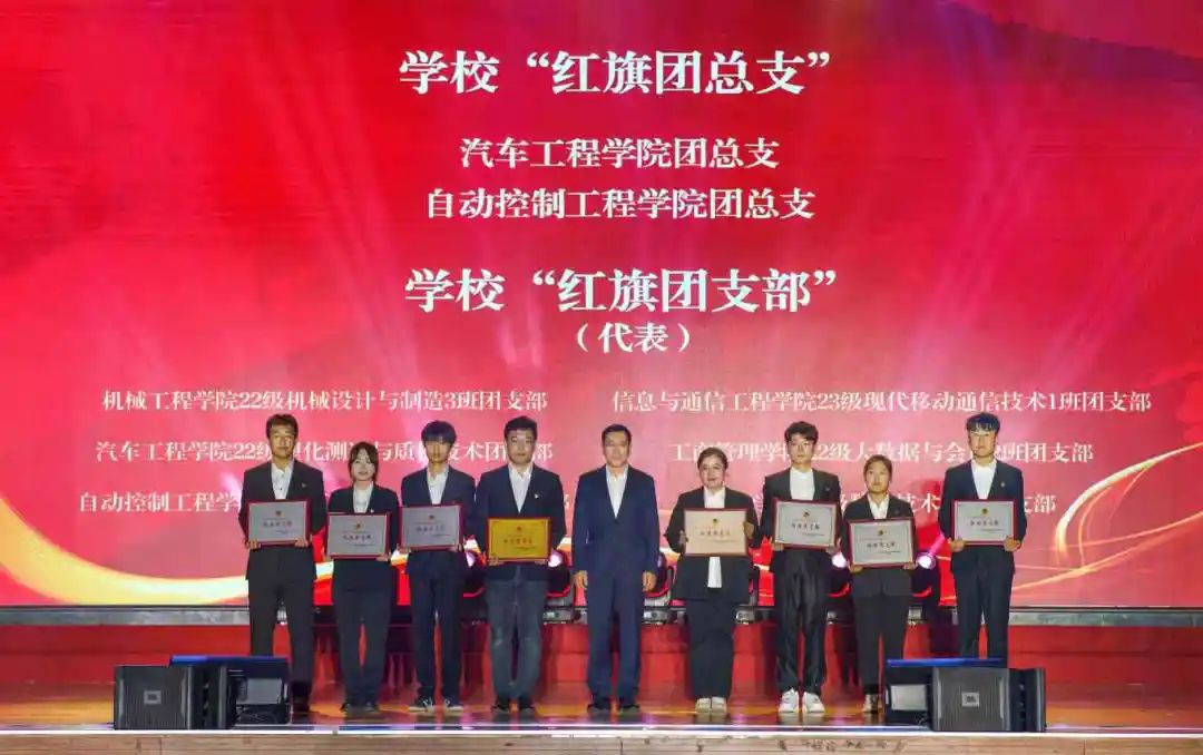 表彰大会分为“青春”、“匠心”和“逐梦”三个篇章,通过回顾过去,展望未来,诠释了新时代青年师生的青春风采。每一篇章以原创设计开启,涵盖音乐诗剧、歌舞、朗诵、合唱等多种表演形式,情感细腻的台词、充满活力的舞蹈和动听的音乐交织在一起,呈现了一幅生动的装院学子追求卓越,勇攀高峰的缤纷画卷。在表彰大会上,学校领导分别为获得2023年度学校“红旗团总支”、“红旗团支部”、“优秀共青团干部”、“优秀共青团员”、学校“最美青年”、国家奖学金、省政府奖学金、国家励志奖学金、学校“自强之星”、学校“社团优秀指导教师”、校园(社团)文化艺术节荣誉称号的8个先进集体代表和63个优秀个人代表进行颁奖表彰。