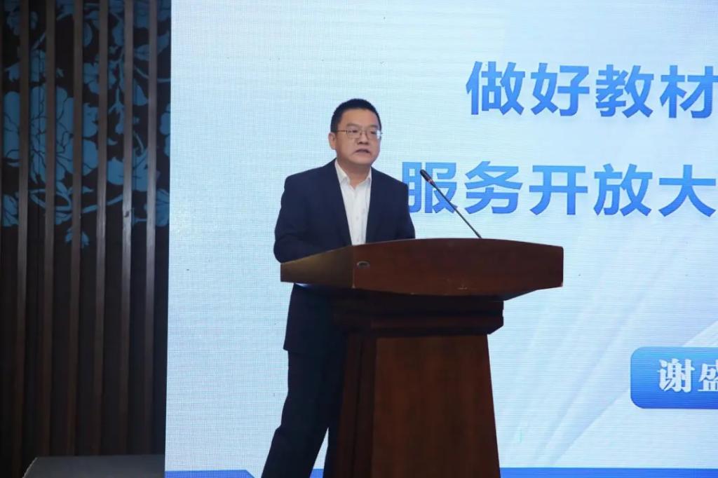 谢盛勇就教材工作作主题报告,从国家开放大学出版传媒集团多元化发展、教材品质持续性提升、服务内容多样化拓展三个方面进行了全面介绍。